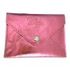 Tarjetero tipo sobre, elaborado 100% en cuero natural, tapa con broche/boton a presion. Detalle de bordes pintados a mano.